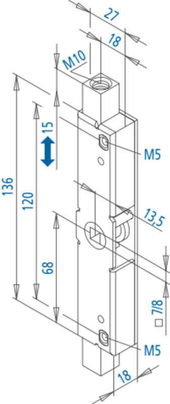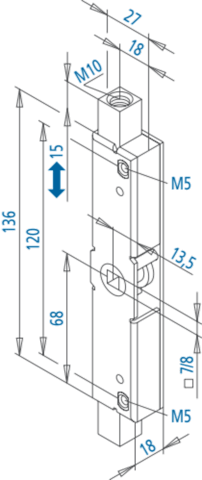 FUHR Kantriegel 295; Produkttyp: Kantriegel; Produkttyp (Hersteller): Kantriegel; Ausführung: mit Vierkantnuss; Material: Stahl; Hub: 15 mm; Breite Schlosskasten: 27 mm; Länge Schlosskasten: 136 mm; S