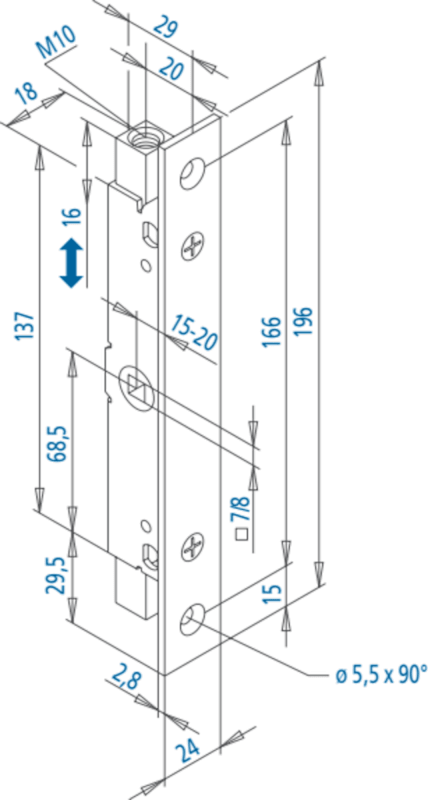 Meesenburg Artikelbezeichnung: BASKÜLE-KANTRIEGEL ZUM EINSTECKEN IN HOHLPROFILE DORN: 18,0 MM, NR.295 1/2