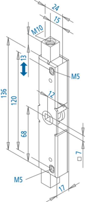 FUHR Kantriegel 294; Produkttyp: Kantriegel; Produkttyp (Hersteller): Kantriegel; Ausführung: mit Vierkantnuss; Material: Stahl; Hub: 13 mm; Breite Schlosskasten: 24 mm; Länge Schlosskasten: 136 mm; S