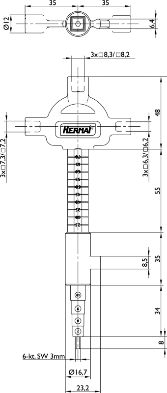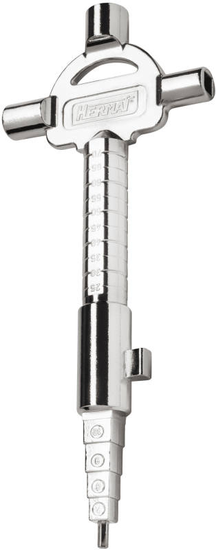 Bauschlüssel, mit Hermat Logo, Vierkant-Dornschlüssel 6 | 7 | 8, Vierkant-Dorn 7 | 8 | 9 | 10, Oberfl. 20 (Mattnickel)