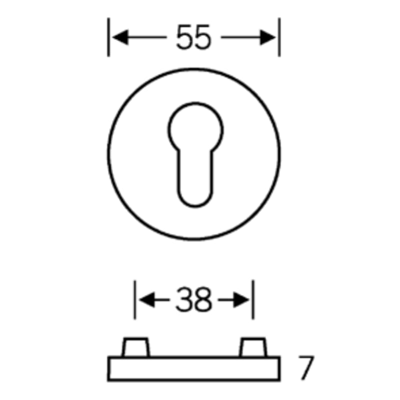 Schlüsselrosette aus Aluminium, verdeckt verschraubt, 55 mm Durchmesser.
