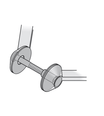 Befestigung paarweise durchgehend für MHK-Türen. Befestigungszubehör: • 2 Stück Senkschrauben M8 mit Hülsenmuttern M8 aus Edelstahl • 4 Stück Kunststoffunterlegscheiben