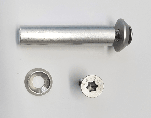 "Befestigungseinheit FS 60: ø 11,9 x 59,8 mm (konstruktiver Einsatz wie S 218529) aus Aluminium, inkl. Senkschrauben M 6 x16, T 30, A4 und Edelstahl-Scheiben ø 6,4 x ø 16,0 mm, A2"