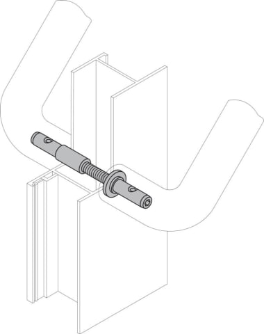 zur paarweisen Griffbefestigung auf Massivholz, Kunststoff-, Stahl- und Aluminium-Profilen, auch zur Befestigung durch Einsteckschlösser verwendbar