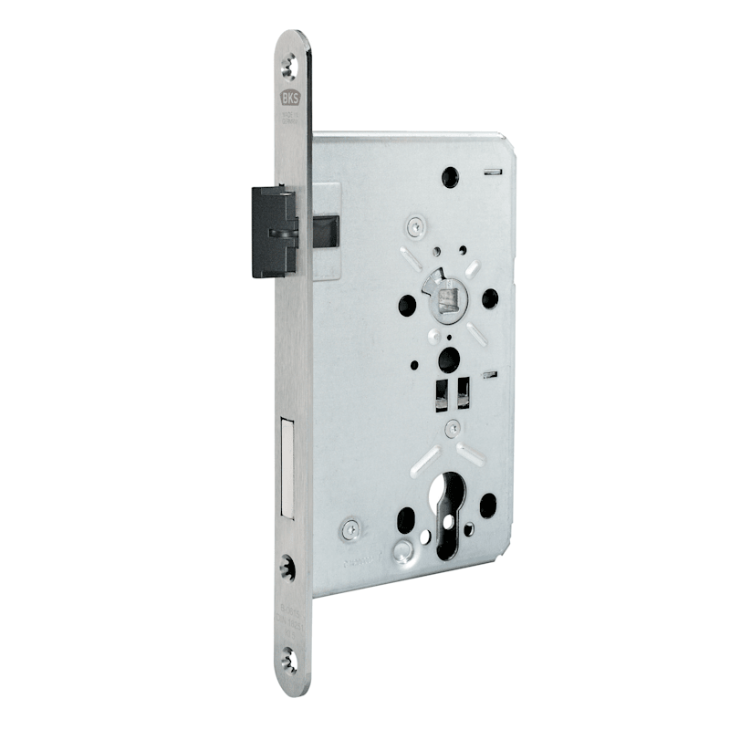 BKS Objekttür Behörden-Einsteckschloss, Lochung: Profilzylinder gelocht, Entfernung: 72, Entfernung: 72 mm, Drückernussvierkant: 8, Drückernussvierkant: 8 mm, Dornmaß: 80 mm, Stulpform: Flachstulp, Stulpbreite: 20 mm, Stulpausführung: rund, Modellnummer: B-0615, Einzelteilmaterial Stulp: edelstahl, Wechsel: mit Wechsel, DIN-Richtung: DIN Rechts, Farbton Stulp: Edelstahl, Oberfläche Stulp: matt, Türausprägung: Türe gefälzt, Schlossriegel: 2 tourig, Schlossklasse: Klasse 5, Riegelausschluss: 20 mm, Stulpstärke: 3 mm, Türart: Abschlusstür, Türflügelanzahl: einflügelig, Einzelteilmaterial Falle: Temperguss, Oberfläche Falle: vernickelt, Falleneigenschaft: mit Flüsterfalle, mit wartungsfreier Gleitführung, Einzelteilmaterial Riegel: stahl, Oberfläche Riegel: vernickelt, Riegeleigenschaft: mit Sicherheitszuhaltung, Drückernuss: einteilig, Einzelteilmaterial Drückernuss: stahl, Schlosskasten: geschlossen, Einzelteilmaterial Schlosskasten: stahl, Oberfläche Schlosskasten: verzinkt, Schlosskastenlänge: 165 mm, Schlosskastenstärke: 13 mm, Stulpeigenschaft: einseitig überstehend, Norm: DIN 18251, Türwerkstoff: Holz, stahl