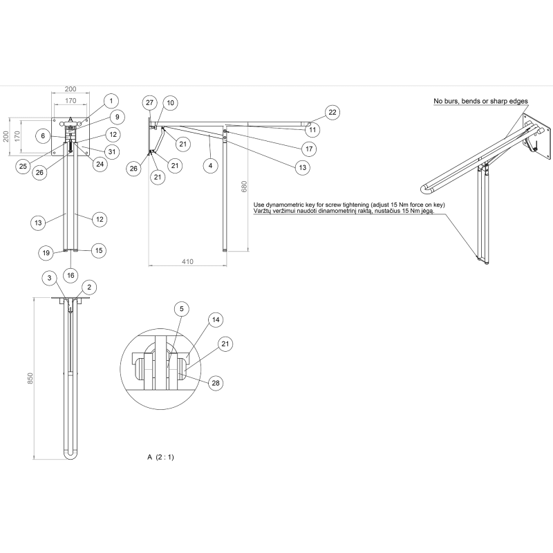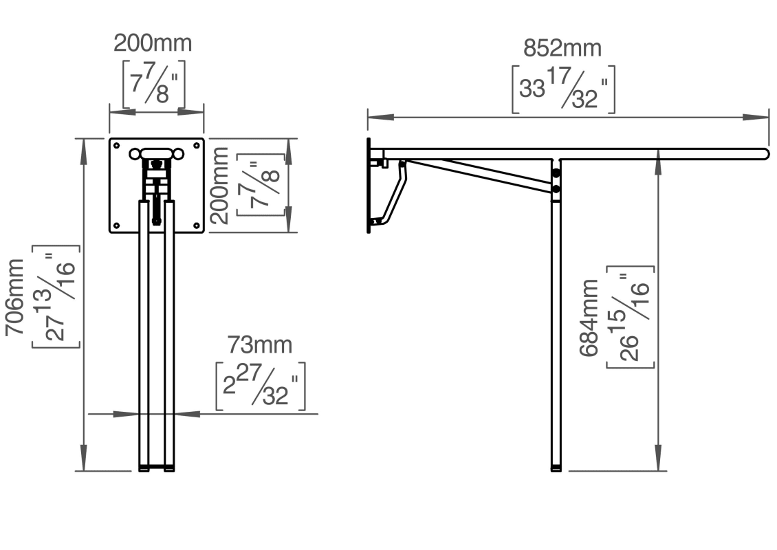 Knud Holscher Kollektion, Haltegriff, absenkbar, barrierefrei, BS-Standard, 685 mm, selbstschneidende Schrauben enthalten. Gefertigt aus hochwertigem, rostfreiem Edelstahl AISI 316, der vor starker Ko
