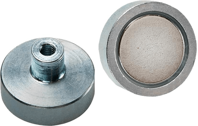 Neodym-Magnet-Flachgreifer mit Gewindebuchse• Oberfläche verzinkt, abgeschirmt • Max. Einsatztemperatur 80 °C