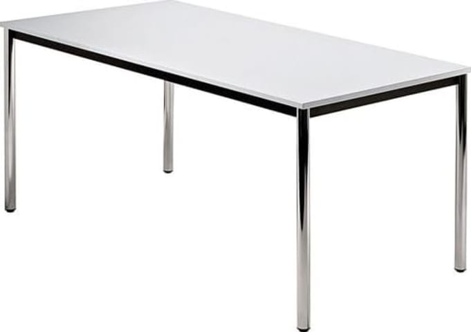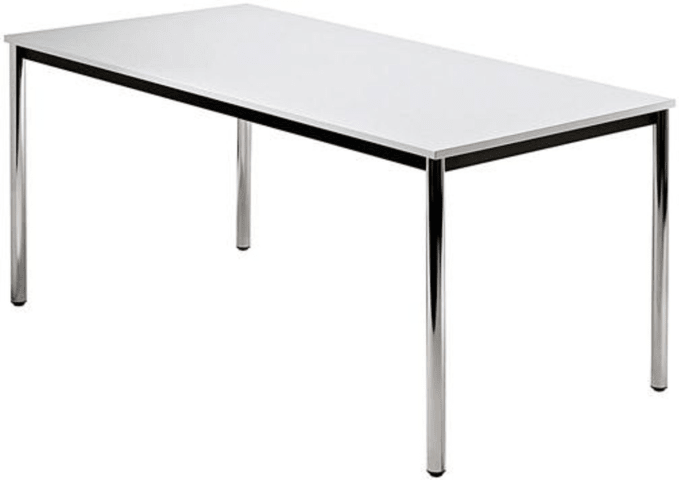 Mehrzwecktisch, Modell DR • Tischplatte: 19 mm dick, aus melaminharzbeschichteter Spanplatte mit 2 mm Kunststoffkante • Stahlrahmen: 40 x 25 mm, verschweißt, einbrennlackiert schwarz • Füße: aus Rundrohr, Ø 40 mm Lieferung: Erfolgt zerlegt – einfache Montage.