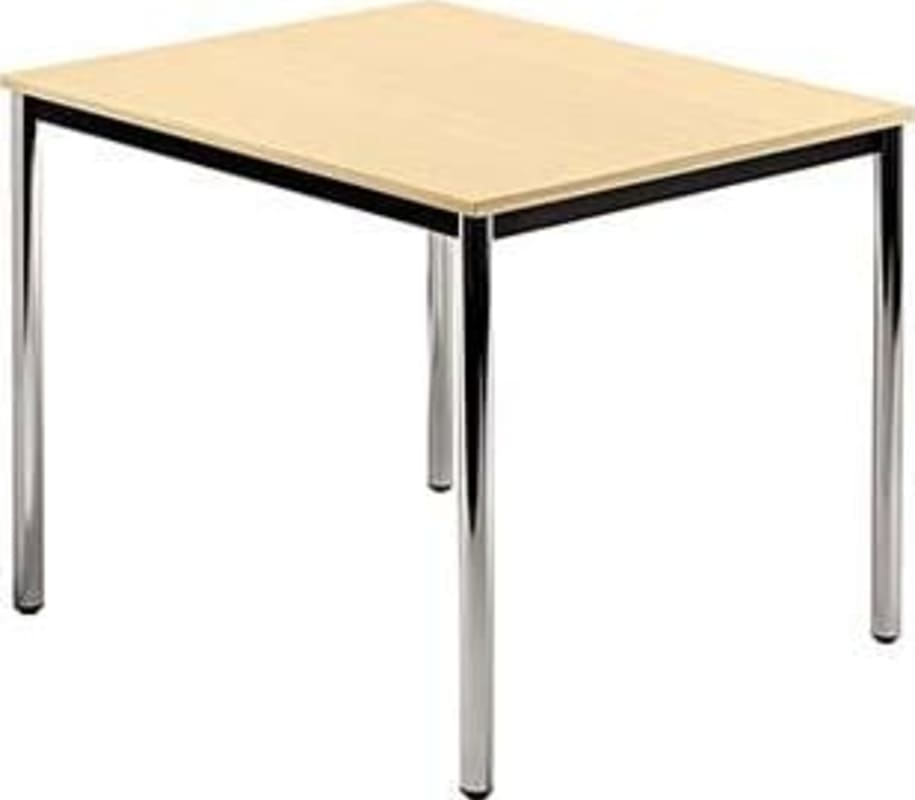 Mehrzwecktisch, Modell DR • Tischplatte: 19 mm dick, aus melaminharzbeschichteter Spanplatte mit 2 mm Kunststoffkante • Stahlrahmen: 40 x 25 mm, verschweißt, einbrennlackiert schwarz • Füße: aus Rundrohr, Ø 40 mm Lieferung: Erfolgt zerlegt – einfache Montage.
