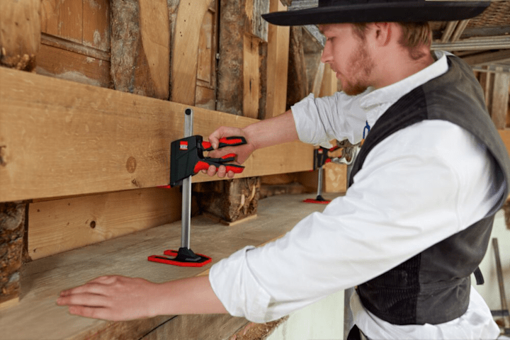 Zum millimetergenauen, sanften und sicheren Anheben (bis zu 8 mm pro Betätigung des Pumpgriffs), Absenken (bis zu 4 mm pro Betätigung des Absenkhebels) sowie Ausrichten von Werkstücken mit nur einer Hand