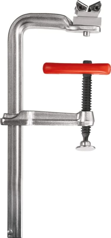 Hochleistungszwinge KombiKlamp SG-VAD• Fest-, Gleitbügel und Druckplatte aus Spezialstahl • Knebelgriff mit Kunststoffaufsatz • Trapezgewindespindel brüniert • Beweglich gelagerte Druckplatte, werk
