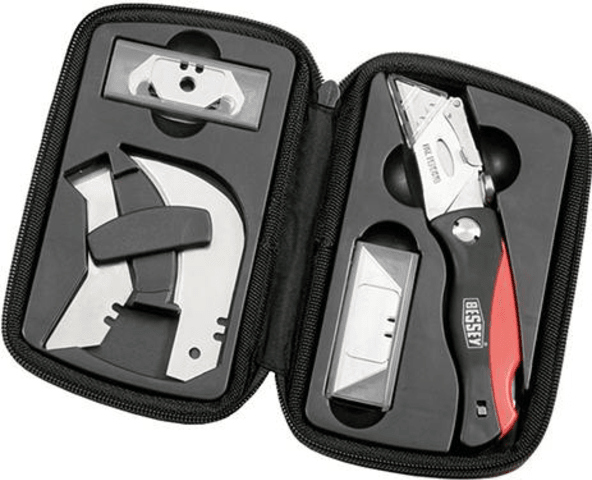 Klappmesser-Satz DBKPH-Set• Feststehende Klinge • Komfort-Kunststoffgriff • Daumenkissen für max. Anpressdruck • Gürtelclip Lieferung: In Nylontasche. Inhalt: 1 Klingen-Klappmesser 15 Trapezk