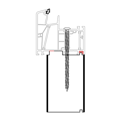 Die konturangepasste Aufnahme gewährleistet eine schnelle und einfache Montage des Profils mit der blaugelb Rahmenfixschraube FK-T30 und eine exakte Positionierung durch die Konturfräsung. Somit entsteht keine Hohlkammer zwischen Bankanschlussprofil und Blendrahmen und durch die prozesssichere Abdichtung wird Luftdichtheit erreicht.
