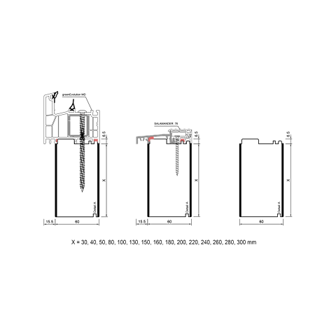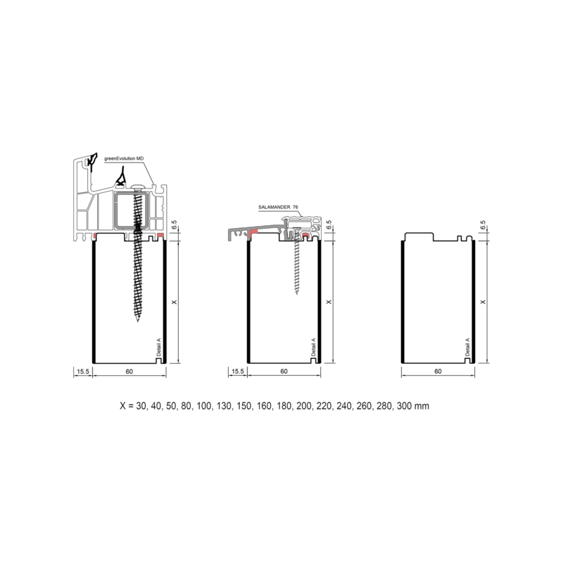 herkömmlichen Kunststoffprofilen mit Stahlarmierung. Es ist dimensionsstabil,