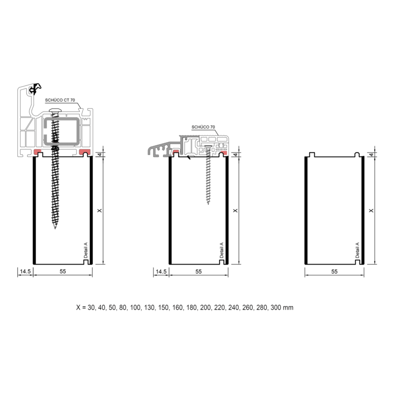 Meesenburg Artikelbezeichnung: BG ADP PVC/TK 60x30x3000, SCHÜCO-70-82 SCHÜCO-70, SCHÜCO-82, CT-70, LIVING