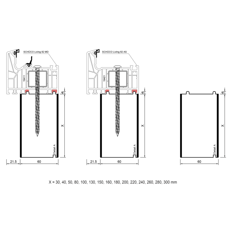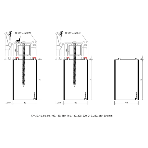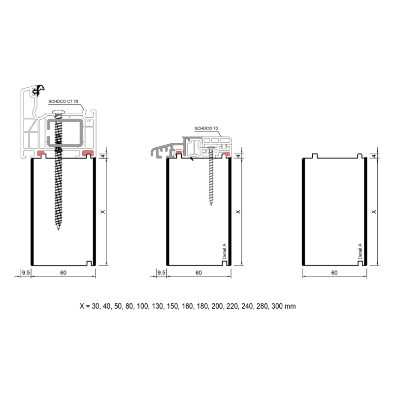 Meesenburg Artikelbezeichnung: BG ADP PVC/TK 60x50x4000, SCHÜCO-70-82 SCHÜCO-70, SCHÜCO-82, CT-70, LIVING