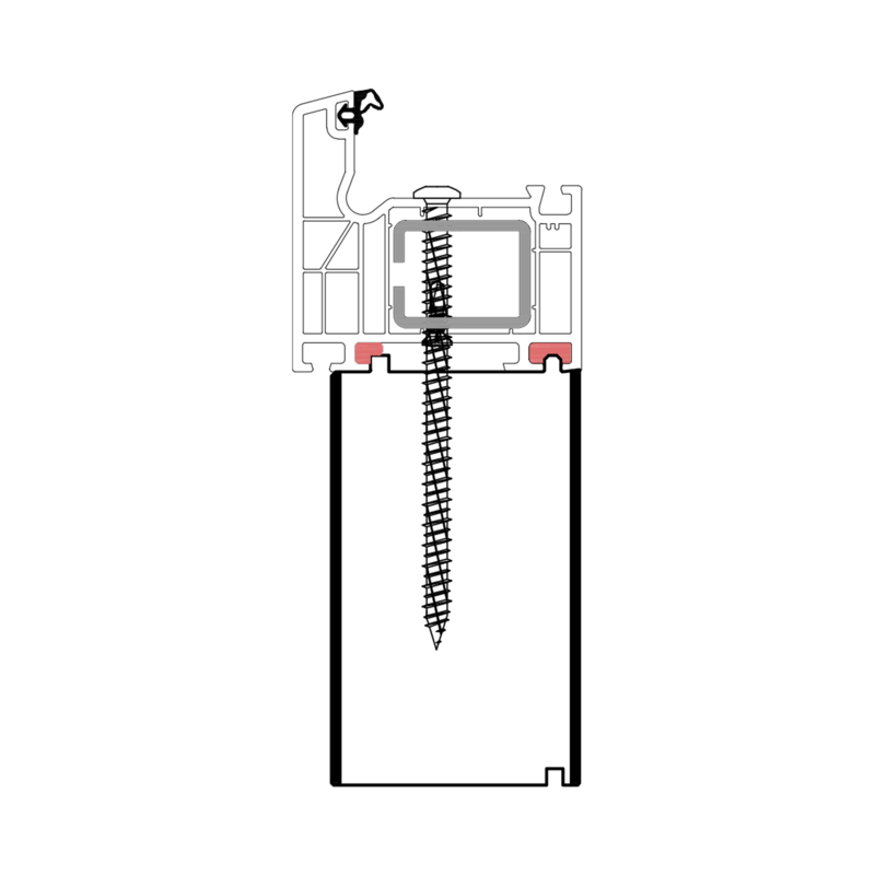 Die konturangepasste Aufnahme gewährleistet eine schnelle und einfache Montage des Profils mit der blaugelb Rahmenfixschraube FK-T30 und eine exakte Positionierung durch die Konturfräsung. Somit entsteht keine Hohlkammer zwischen Adapterprofil und Blendrahmen und durch die prozesssichere Abdichtung wird Luftdichtheit erreicht.