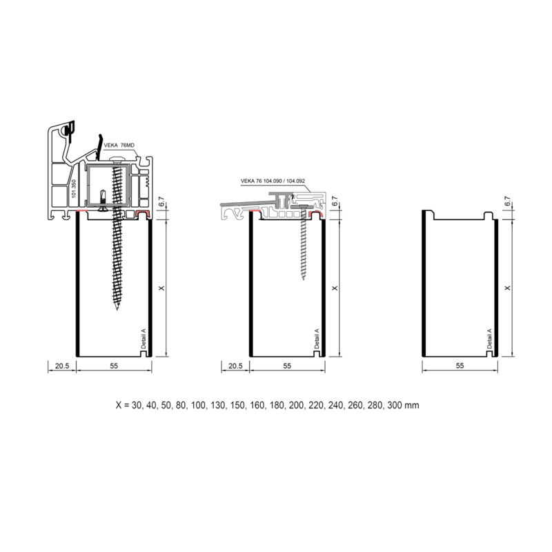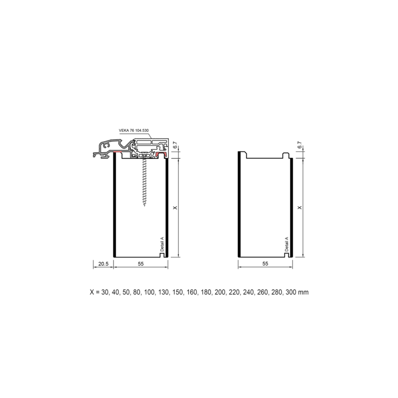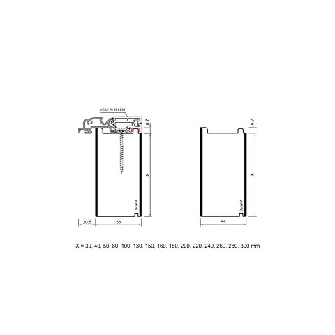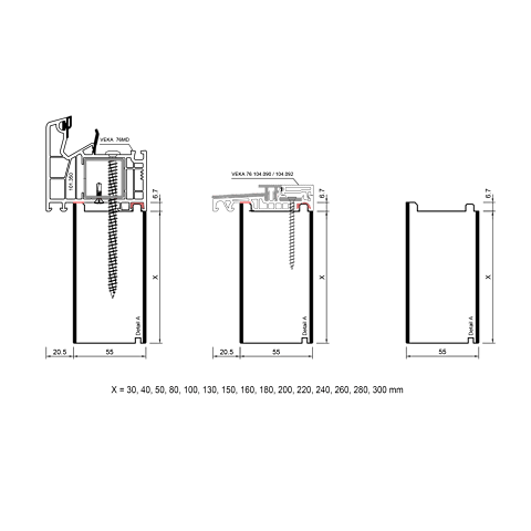 verwenden werden. Die profilbezogenen Adapterprofile PVC/ TK können in Höhen von 30 bis 300 mm hergestellt werden.