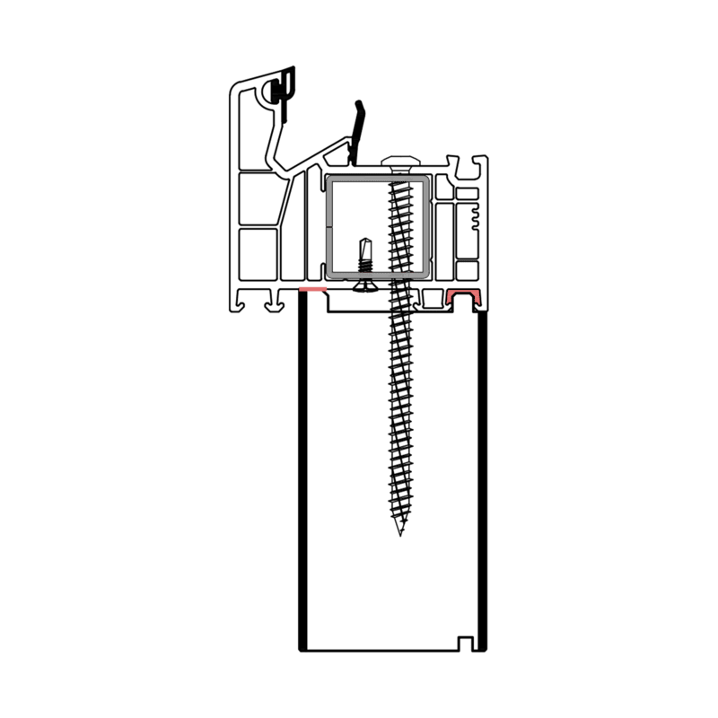 Die konturangepasste Aufnahme gewährleistet eine schnelle und einfache Montage des Profils mit der blaugelb Rahmenfixschraube FK-T30 und eine exakte Positionierung durch die Konturfräsung. Somit entsteht keine Hohlkammer