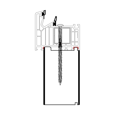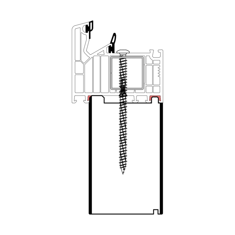 Die konturangepasste Aufnahme gewährleistet eine schnelle und einfache Montage des Profils mit der blaugelb Rahmenfixschraube FK-T30 und eine exakte Positionierung durch die Konturfräsung. Somit entsteht keine Hohlkammer zwischen Adapterprofil und Blendrahmen und durch die prozesssichere Abdichtung wird Luftdichtheit erreicht.