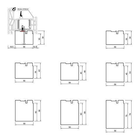 blaugelb Bankanschlussprofil EPS REHAU T/80 50x70x1200MM REHAU SYNEGO, Bautiefe T/80