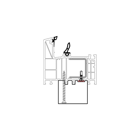 Die konturangepasste Aufnahme gewährleistet eine schnelle und einfache Montage des Profils mit der blaugelb Rahmenfixschraube FK-T30 oder der blaugelb Kopplungsschraube FK-T30 mit Bohrspitze und eine exakte Positionierung durch die Konturfräsung. Somit entsteht keine Hohlkammer zwischen Bankanschlussprofil und Blendrahmen und durch die prozesssichere Abdichtung wird Luftdichtheit erreicht.