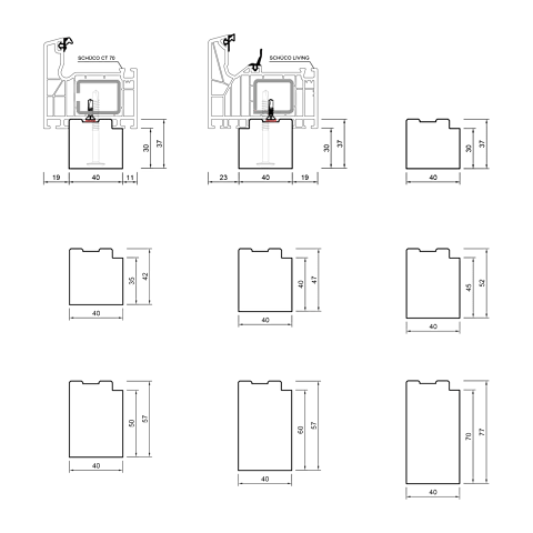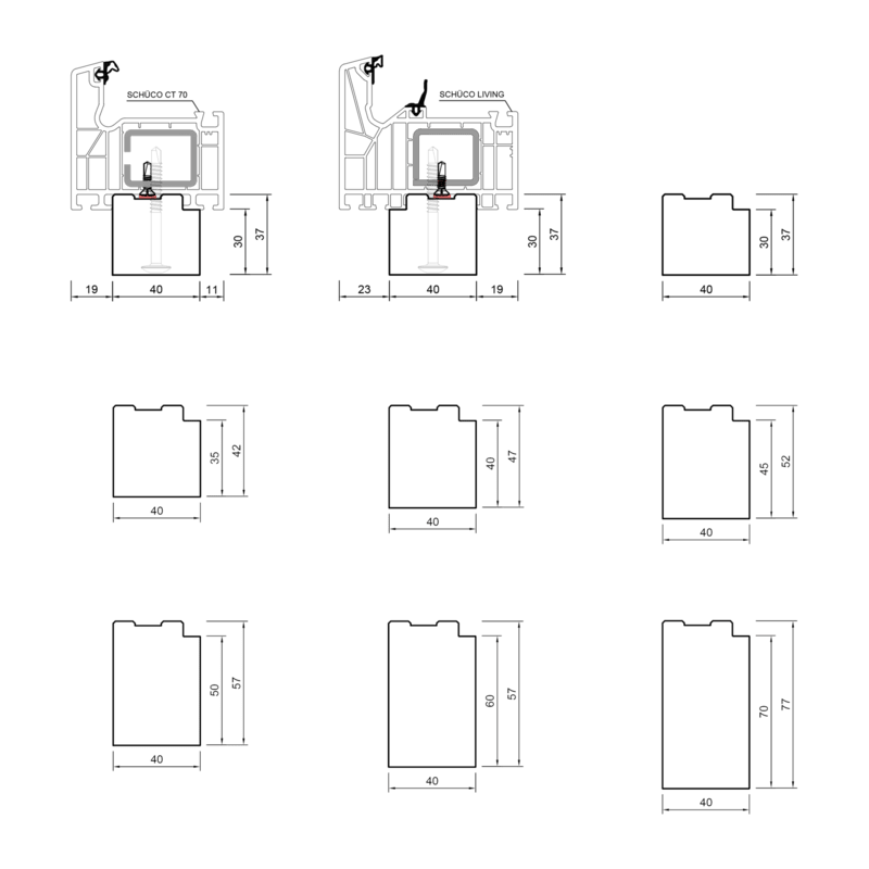 Meesenburg Artikelbezeichnung: BG BAP EPS 40x30x1200, SCHÜCO-70-82 SCHÜCO-70, SCHÜCO-82, CT-70, LIVING