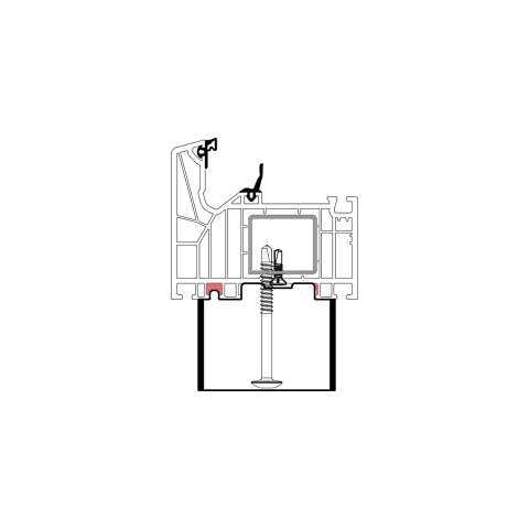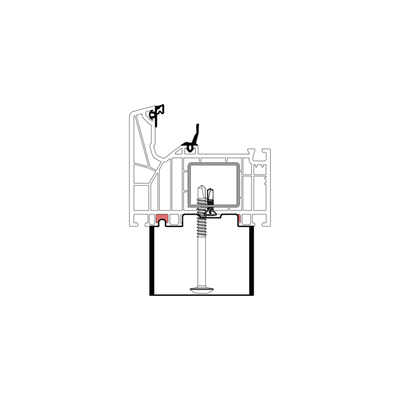 Die konturangepasste Aufnahme gewährleistet eine schnelle und einfache Montage des Profils mit der blaugelb Rahmenfixschraube FK-T30 oder der blaugelb Kopplungsschraube FK-T30 mit Bohrspitze und eine exakte Positionierung durch die Konturfräsung. Somit entsteht keine Hohlkammer zwischen Bankanschlussprofil und Blendrahmen und durch die prozesssichere Abdichtung wird Luftdichtheit erreicht.