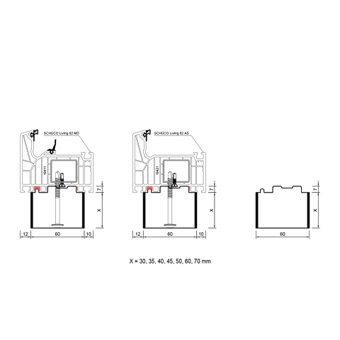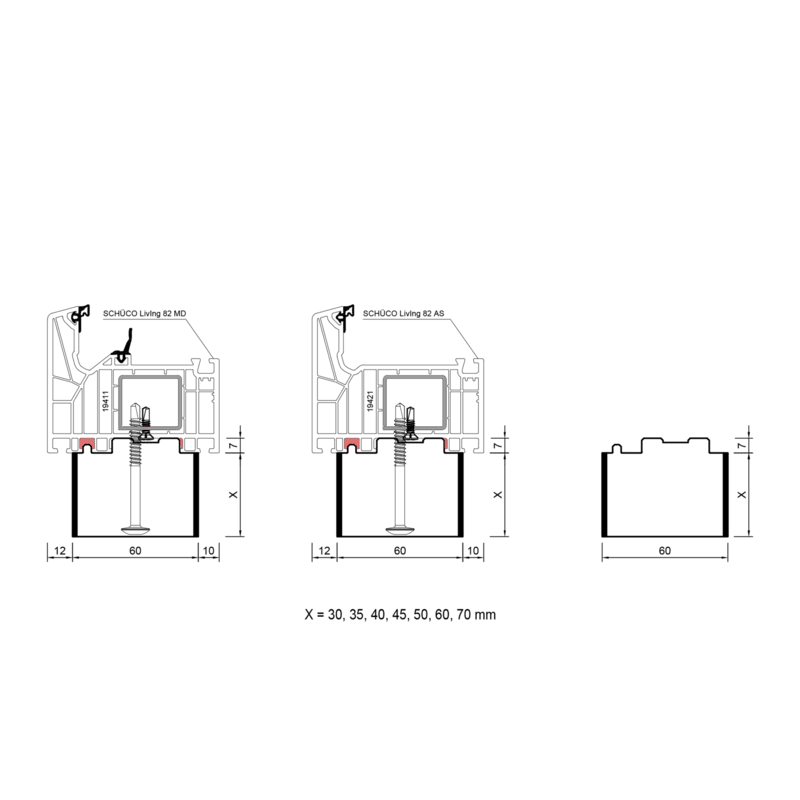blaugelb Bankanschlussprofil PVC/TK 60x50x4000, SCHÜCO-82 SCHÜCO-82, LIVING