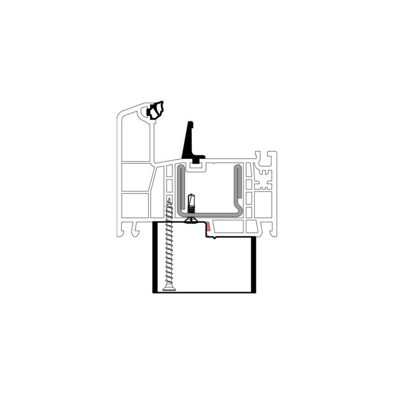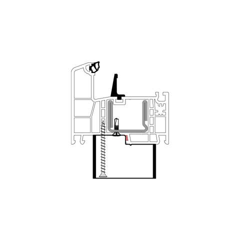 Die konturangepasste Aufnahme gewährleistet eine schnelle und einfache Montage des Profils mit der blaugelb Rahmenfixschraube FK-T30 und eine exakte Positionierung durch die Konturfräsung. Somit entsteht keine Hohlkammer zwischen Bankanschlussprofil und Blendrahmen und durch die prozesssichere Abdichtung wird Luftdichtheit erreicht.