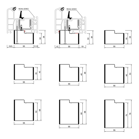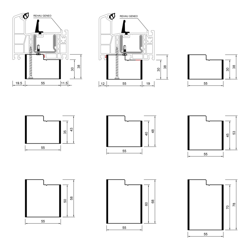 Meesenburg Artikelbezeichnung: BG BAP PVC/TK 55x30x4000, REHAU-86 REHAU-86, GENEO