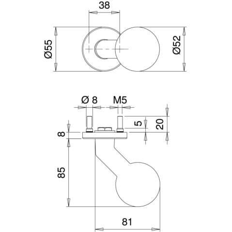 • Kugelknopf gekröpft auf Rundrosette K4/082-2 • Feststehend
