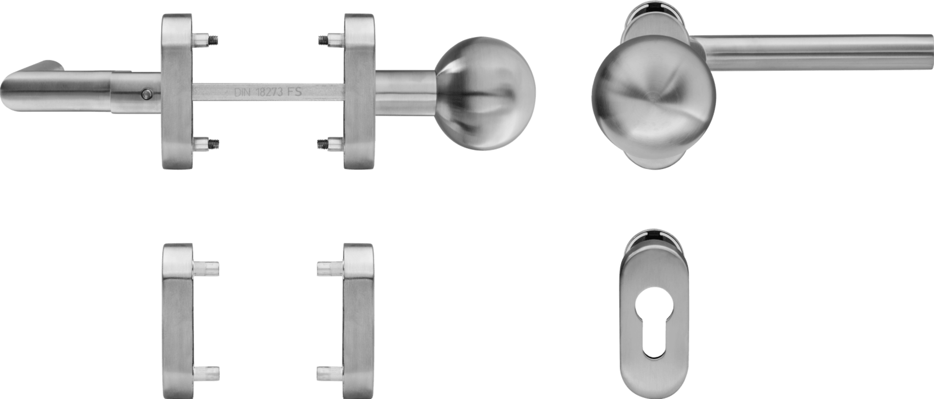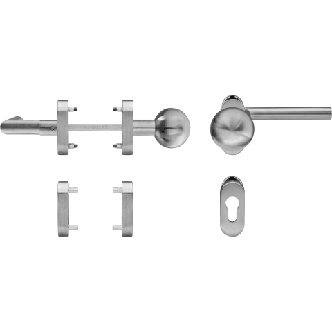 Die formschöne, elegante Garnitur aus hochwertigem Edelstahl wird mittels verdeckter Verschraubung befestigt. Die mitgelieferte Befestigungslösung besteht aus Blindnietmuttern und den dazu passenden metrischen Schrauben, die einen sicheren Sitz am Türflügel gewährleisten.