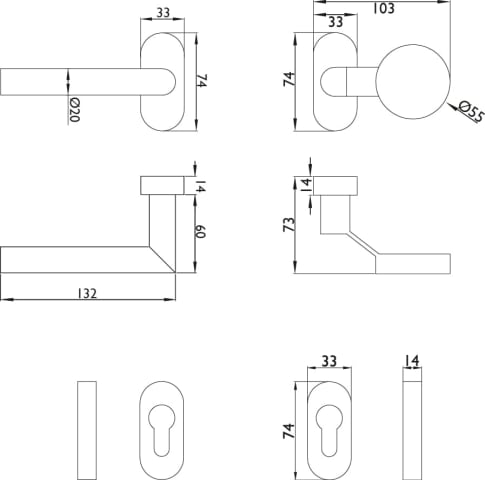 Die blaugelb Rahmentürwechselgarnitur 90°-Form/Knopf flach gekröpft FS auf ovaler Rosette ist für Feuer-, Rauch- und Fluchtwegtüren mit erhöhtem Sicherheitsanspruch in puncto Feuerschutz nach DIN 1827
