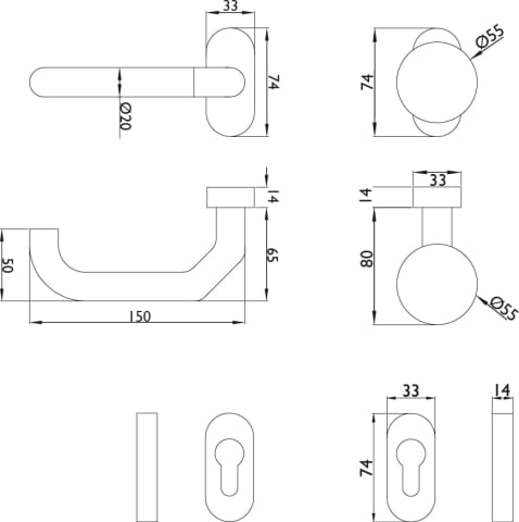 33 x 74 mm (B x H)