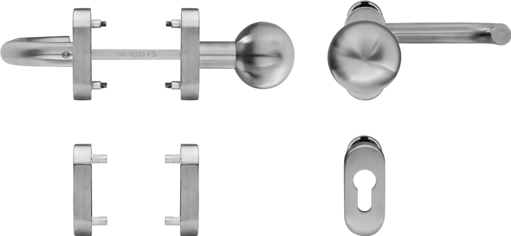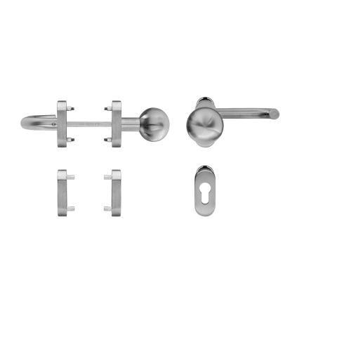 Die formschöne, elegante Garnitur aus hochwertigem Edelstahl wird mittels verdeckter Verschraubung befestigt. Die mitgelieferte Befestigungslösung besteht aus Blindnietmuttern und den dazu passenden metrischen Schrauben, die einen sicheren Sitz am Türflügel gewährleisten.