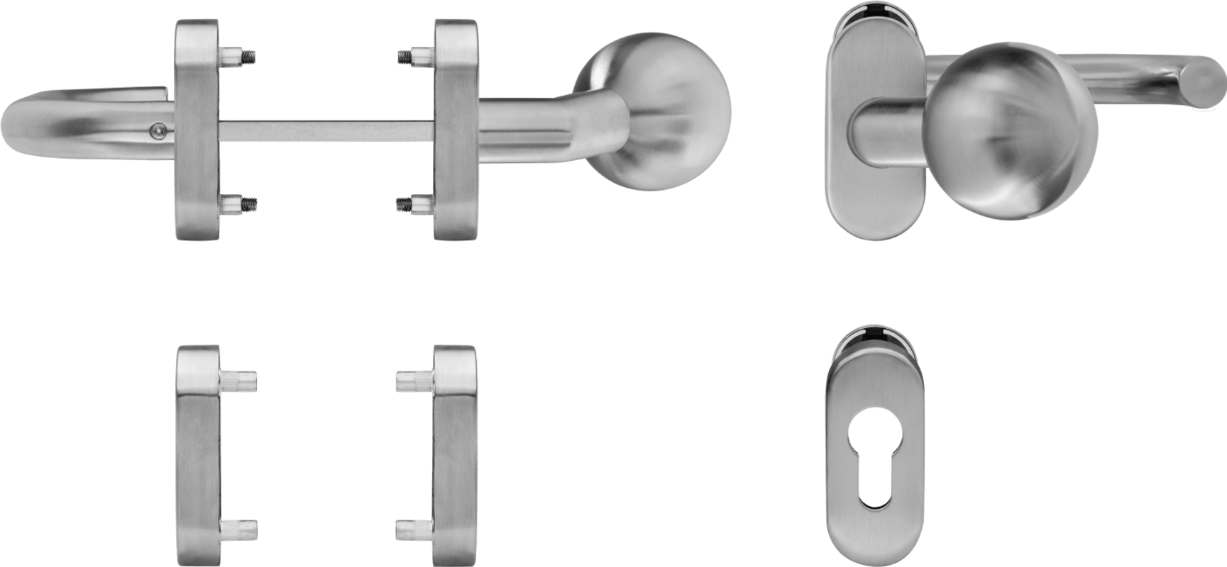 Die blaugelb Rahmentürwechselgarnitur U-45°-Form/Knopf gekröpft Kl. 4 auf ovaler Rosette ist für Aluminiumtüren (mitgelieferte Befestigung) oder auch Kunststofftüren im Objektbereich nach DIN EN 1906: