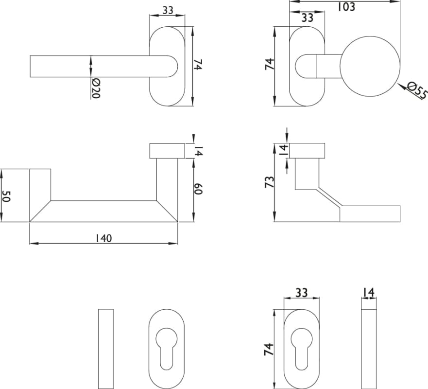 33 x 74 mm (B x H) |