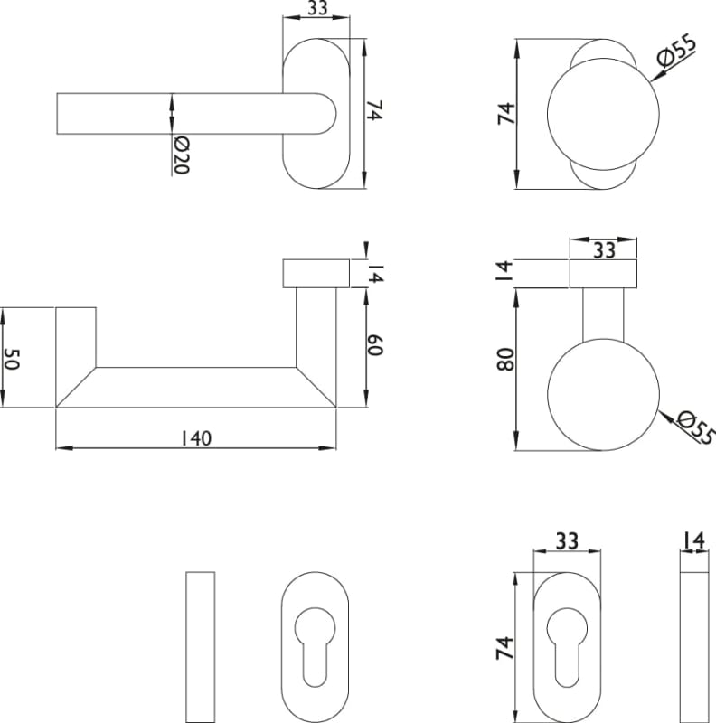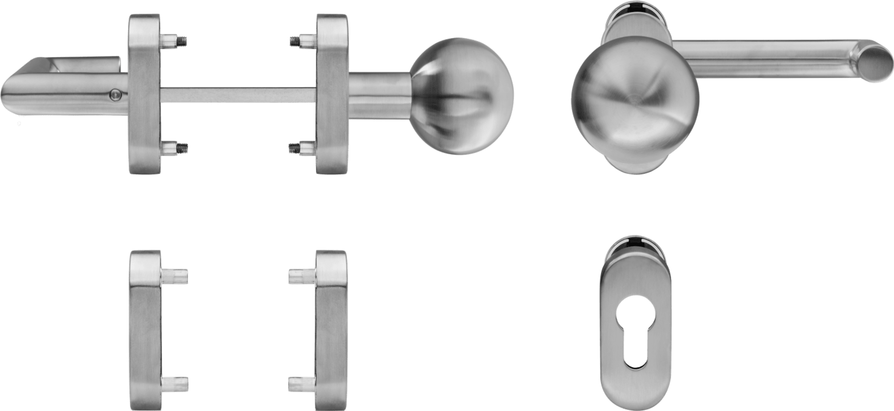 Die formschöne, elegante Garnitur aus hochwertigem Edelstahl wird mittels verdeckter Verschraubung befestigt. Die mitgelieferte Befestigungslösung für Aluminiumtüren besteht aus Blindnietmuttern und den dazu passenden metrischen Schrauben, die einen sicheren Sitz am Türflügel gewährleisten.  Für die Befestigung an Kunststofftüren muss auf eine eigene Befestigungslösung zurückgegriffen werden.
