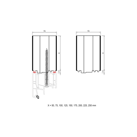 Meesenburg Artikelbezeichnung: BG RVB PVC/TK 70x250x1500 30DB, ALUPLAST ALUPLAST-70, ENERGETO, IDEAL, 4000, 5000