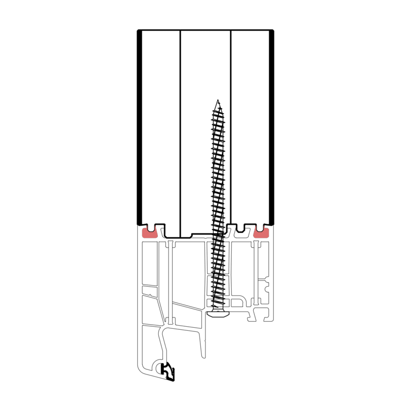 Die konturangepasste Aufnahme gewährleistet eine schnelle und einfache Montage des Profils mit der blaugelb Rahmenfixschraube FK-T30 und eine exakte Positionierung durch die Konturfräsung. Somit entsteht keine Hohlkammer zwischen Bankanschlussprofil und Blendrahmen und durch die prozesssichere Abdichtung wird Luftdichtheit erreicht.