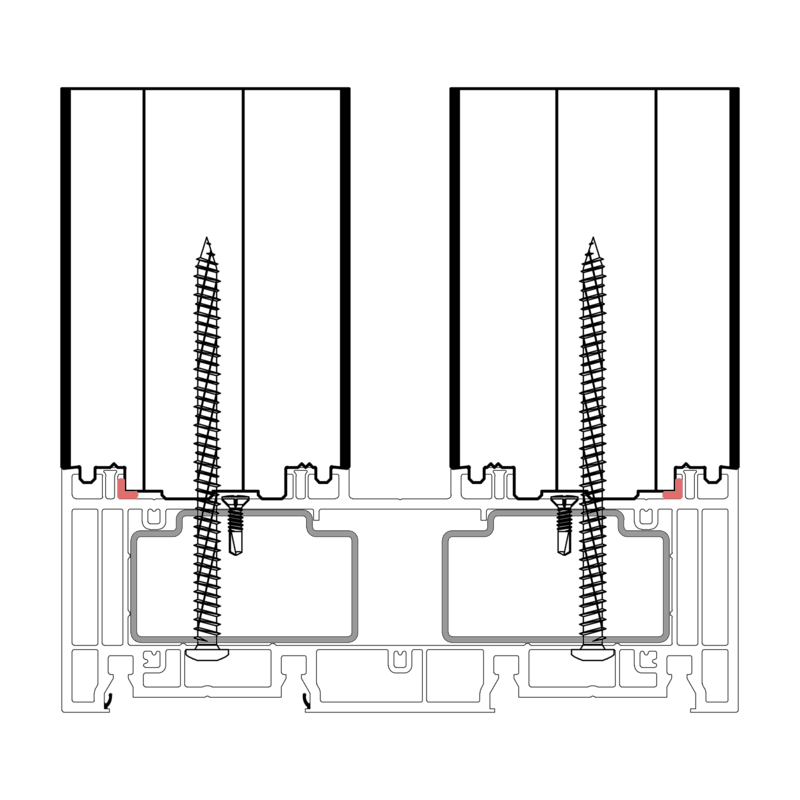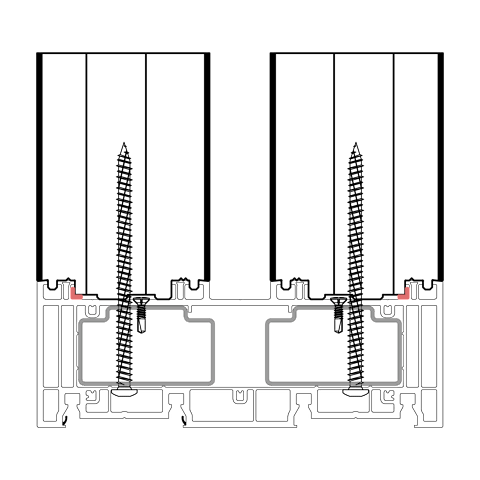 Die konturangepasste Aufnahme gewährleistet eine schnelle und einfache Montage des Profils mit der blaugelb Rahmenfixschraube FK-T30 und eine exakte Positionierung durch die Konturfräsung. Somit entsteht keine Hohlkammer zwischen Bankanschlussprofil und Blendrahmen und durch die prozesssichere Abdichtung wird Luftdichtheit erreicht.