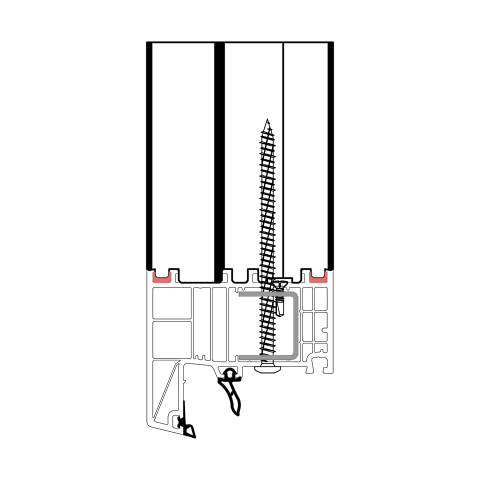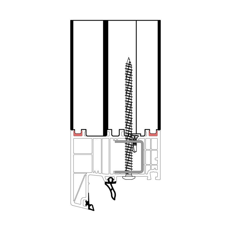 Die konturangepasste Aufnahme gewährleistet eine schnelle und einfache Montage des Profils mit der blaugelb Rahmenfixschraube FK-T30 und eine exakte Positionierung durch die Konturfräsung. Somit entsteht keine Hohlkammer zwischen Rahmenverbreiterung und Blendrahmen und durch die prozesssichere Abdichtung wird Luftdichtheit erreicht.