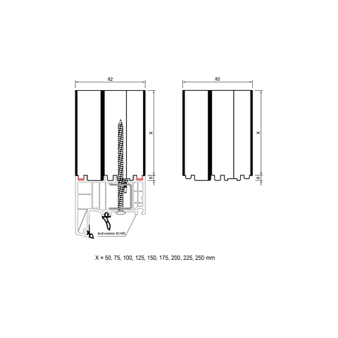 • Wärmedurchgangskoeffizient U-Wert 82 mm 36 dB: 0,414 W/m²K