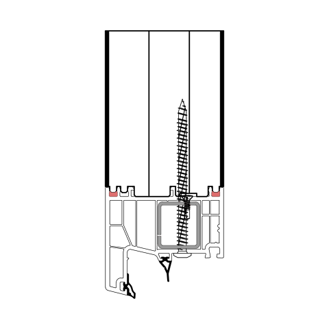 Die konturangepasste Aufnahme gewährleistet eine schnelle und einfache Montage des Profils mit der blaugelb Rahmenfixschraube FK-T30 und eine exakte Positionierung durch die Konturfräsung. Somit entsteht keine Hohlkammer zwischen Rahmenverbreiterung und Blendrahmen und durch die prozesssichere Abdichtung wird Luftdichtheit erreicht.