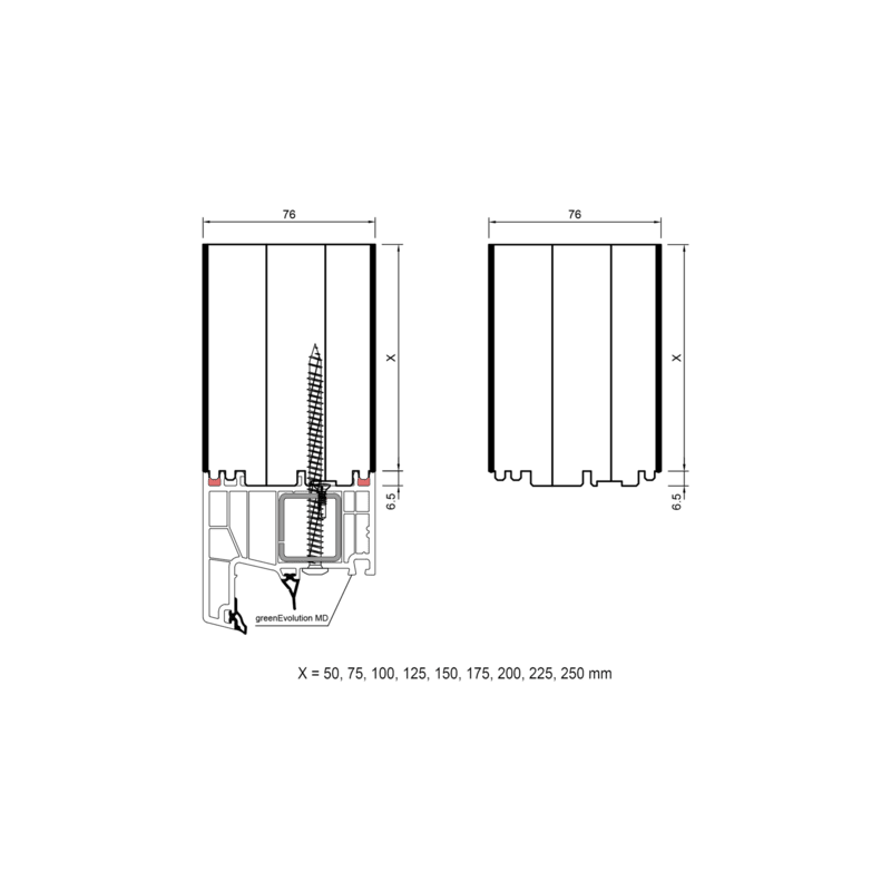Meesenburg Artikelbezeichnung: BG RVB PVC/TK 76x150x3000 30DB, SALAMAND SALAMANDER-76, GREENEVOLUTION