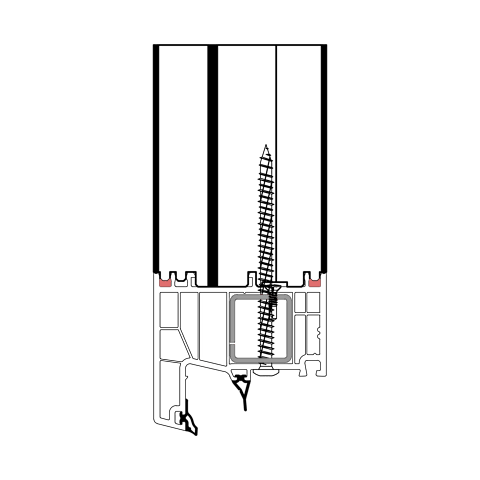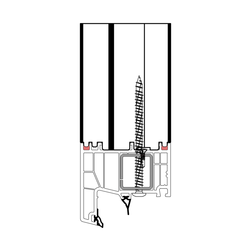 Die konturangepasste Aufnahme gewährleistet eine schnelle und einfache Montage des Profils mit der blaugelb Rahmenfixschraube FK-T30 und eine exakte Positionierung durch die Konturfräsung. Somit entsteht keine Hohlkammer zwischen Rahmenverbreiterung und Blendrahmen und durch die prozesssichere Abdichtung wird Luftdichtheit erreicht.