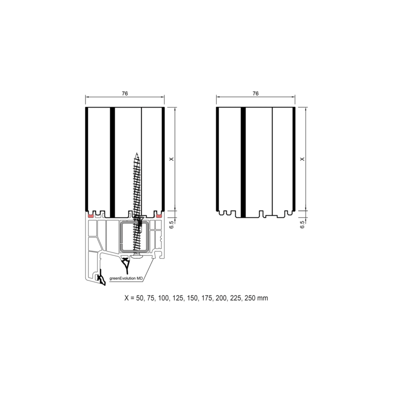 Meesenburg Artikelbezeichnung: BG RVB PVC/TK 76x175x1500 36DB, SALAMAND SALAMANDER-76, GREENEVOLUTION
