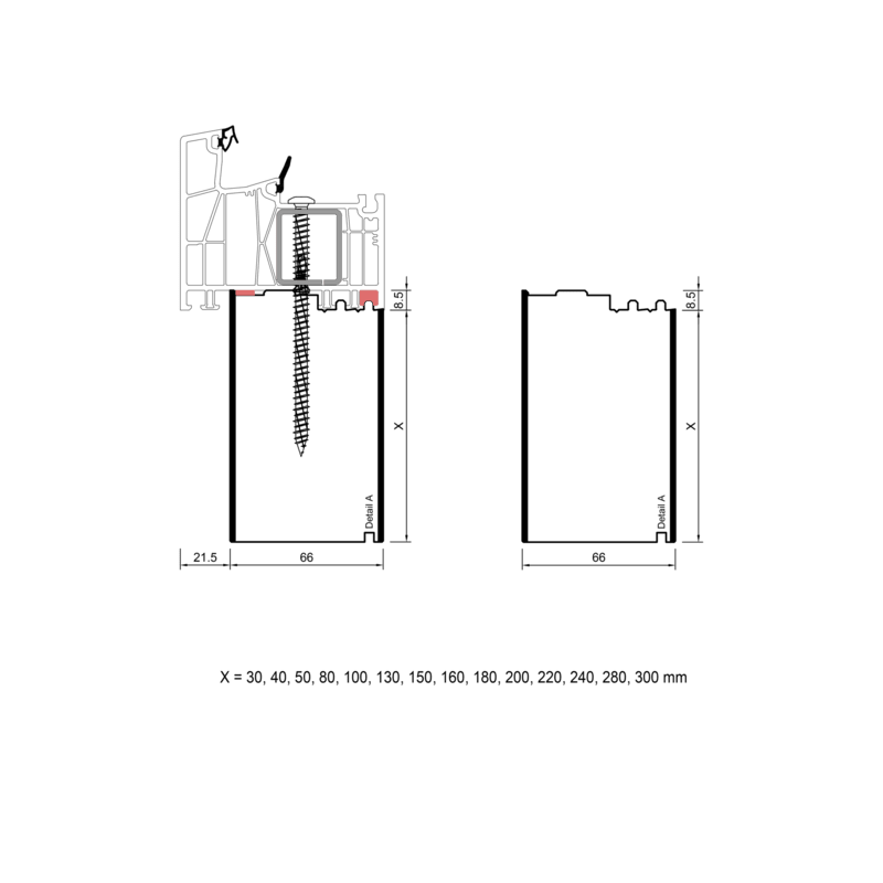Durch die eingefräste Nut-Feder-Verbindung besteht die Möglichkeit das profilbezogene Sockeldämmprofil PVC/TK mit profilunabhängigen Sockeldämmprofilen zu adaptieren. So haben beide zu verbindende Profile an einem Rand je eine Nut und am anderen Rand je eine Feder und sind untereinander in der Höhe koppelbar. Die konturangepasste Aufnahme gewährleistet eine schnelle und einfache Montage des Profils mit der blaugelb Rahmenfixschraube FK-T30 und eine exakte Positionierung durch die Konturfräsung. Somit entsteht keine Hohlkammer zwischen Bankanschlussprofil und Blendrahmen und durch die prozesssichere Abdichtung wird Luftdichtheit erreicht.
