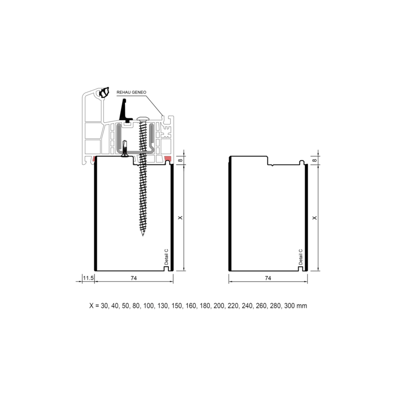 Meesenburg Artikelbezeichnung: BG SDP PVC/TK 74x200x4000, REHAU-86 REHAU-86, GENEO